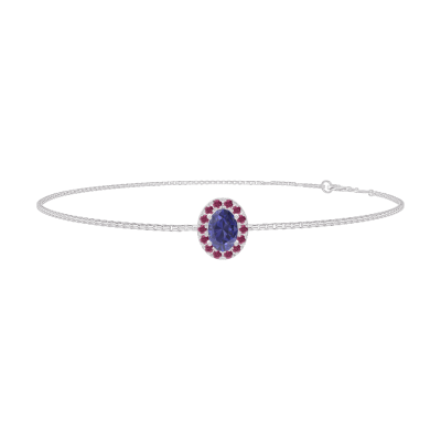 « L'ATELIER » NR 200695Bransoletka Białe złoto 750 - Niebieski szafir Owal 0.3 karat - Korona z kamieni Rubin - Łańcuszek Wenecjana