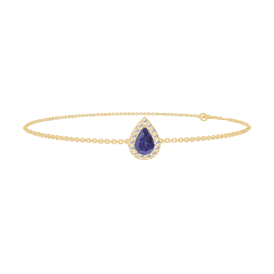 « L'ATELIER » NR 200713Bransoletka Żółte złoto 750 - Niebieski szafir Gruszka 0.3 karat - Korona z kamieni Diament - Łańcuszek Łańcuszek ankier