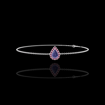 « L'ATELIER » Nº200723Bransoletka Białe złoto 750 - Niebieski szafir Gruszka 0.3 karat - Korona z kamieni Rubin - Łańcuszek Łańcuszek ankier