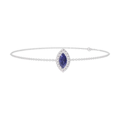 « L'ATELIER » Nº200747Bransoletka Białe złoto 750 - Niebieski szafir Markiza 0.3 karat - Korona z kamieni Diament - Łańcuszek Łańcuszek ankier