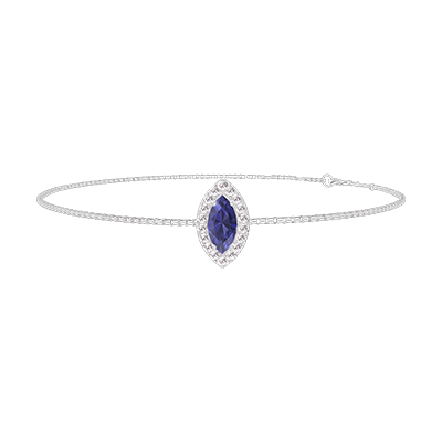 « L'ATELIER » NR 200752Bransoletka Białe złoto 375 - Niebieski szafir Markiza 0.3 karat - Korona z kamieni Diament - Łańcuszek Wenecjana