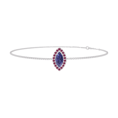 « L'ATELIER » NR 200759Bransoletka Białe złoto 750 - Niebieski szafir Markiza 0.3 karat - Korona z kamieni Rubin - Łańcuszek Wenecjana