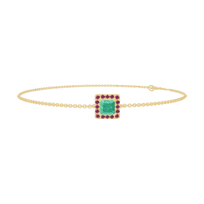 « L'ATELIER » Nº200817Bransoletka Żółte złoto 750 - Szmaragd „Księżniczka” 0.3 karat - Korona z kamieni Rubin - Łańcuszek Łańcuszek ankier
