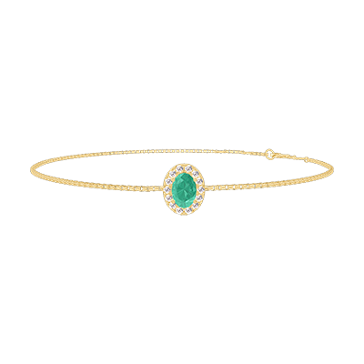 « L'ATELIER » NR 200878Bransoletka Żółte złoto 375 - Szmaragd Owal 0.3 karat - Korona z kamieni Diament - Łańcuszek Wenecjana