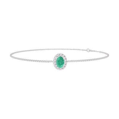 « L'ATELIER » Nº200880Bransoletka Białe złoto 375 - Szmaragd Owal 0.3 karat - Korona z kamieni Diament - Łańcuszek Wenecjana