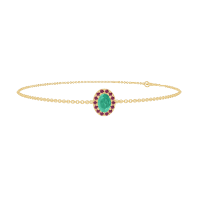 « L'ATELIER » Nº200881Bransoletka Żółte złoto 750 - Szmaragd Owal 0.3 karat - Korona z kamieni Rubin - Łańcuszek Łańcuszek ankier