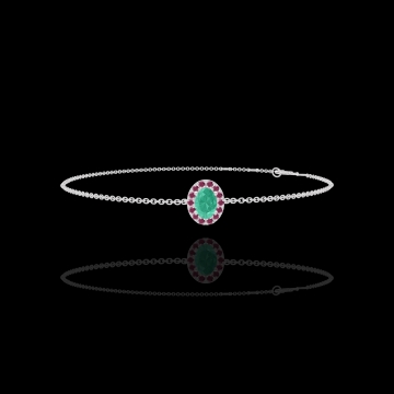 « L'ATELIER » Nº200884Bransoletka Białe złoto 375 - Szmaragd Owal 0.3 karat - Korona z kamieni Rubin - Łańcuszek Łańcuszek ankier