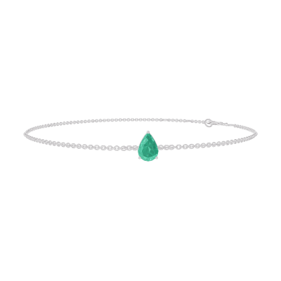 « L'ATELIER » Nº200900Bransoletka Białe złoto 375 - Szmaragd Gruszka 0.3 karat - Łańcuszek Łańcuszek ankier