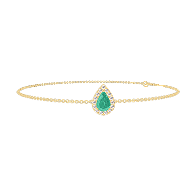 « L'ATELIER » Nº200905Bransoletka Żółte złoto 750 - Szmaragd Gruszka 0.3 karat - Korona z kamieni Diament - Łańcuszek Łańcuszek ankier