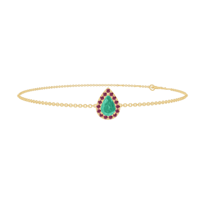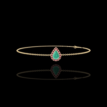 « L'ATELIER » Nº200913Bransoletka Żółte złoto 750 - Szmaragd Gruszka 0.3 karat - Korona z kamieni Rubin - Łańcuszek Łańcuszek ankier