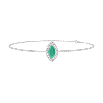 « L'ATELIER » Nº200944Bransoletka Białe złoto 375 - Szmaragd Markiza 0.3 karat - Korona z kamieni Diament - Łańcuszek Wenecjana