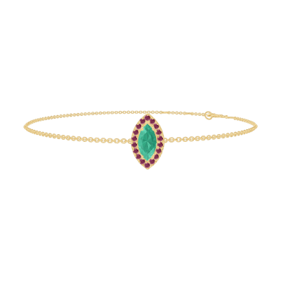 « L'ATELIER » Nº200946Bransoletka Żółte złoto 375 - Szmaragd Markiza 0.3 karat - Korona z kamieni Rubin - Łańcuszek Łańcuszek ankier
