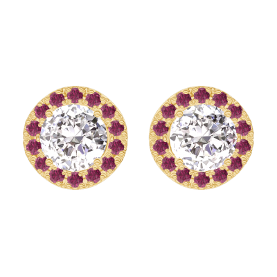 « L'ATELIER » NR 201065Kolczyki Żółte złoto 750 - Diament laboratoryjny okrągły 0.3 karat (2 X) - Korona z kamieni Rubin 5