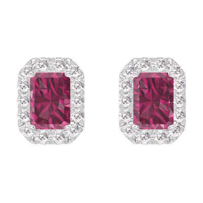« L'ATELIER » NR 201191Kolczyki Białe złoto 750 - Rubin Prostokąt 0.3 karat (2 X) - Korona z kamieni Diament