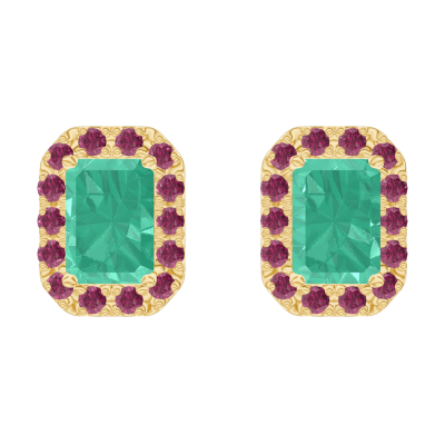 « L'ATELIER » NR 201386Kolczyki Żółte złoto 375 - Szmaragd Prostokąt 0.3 karat (2 X) - Korona z kamieni Rubin
