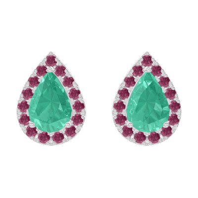 « L'ATELIER » NR 201420Kolczyki Białe złoto 375 - Szmaragd Gruszka 0.3 karat (2 X) - Korona z kamieni Rubin
