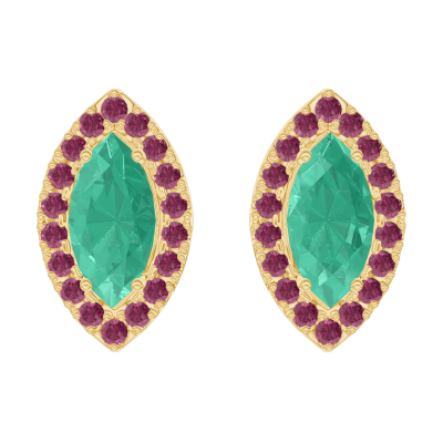 « L'ATELIER » NR 201433Kolczyki Żółte złoto 750 - Szmaragd Markiza 0.3 karat (2 X) - Korona z kamieni Rubin