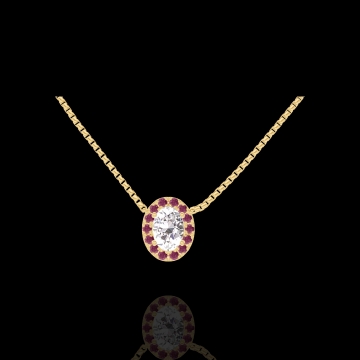 « L'ATELIER » Nº201558Naszyjnik Żółte złoto 375 - Diament Owal 0.3 karat - Korona z kamieni Rubin - Łańcuszek Wenecjana