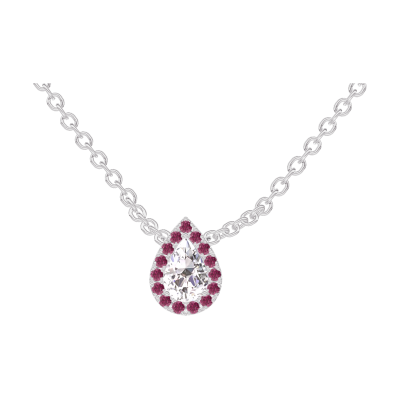 « L'ATELIER » Nº201588Naszyjnik Białe złoto 375 - Diament Gruszka 0.3 karat - Korona z kamieni Rubin - Łańcuszek Łańcuszek ankier