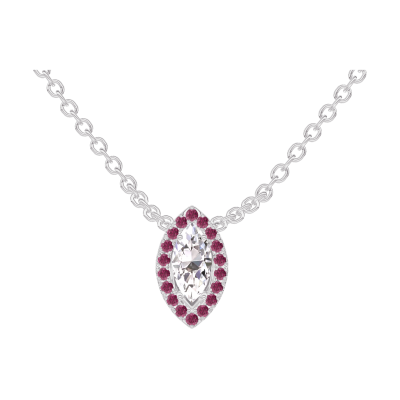 « L'ATELIER » Nº201619Naszyjnik Białe złoto 750 - Diament Markiza 0.3 karat - Korona z kamieni Rubin - Łańcuszek Łańcuszek ankier