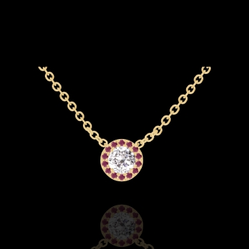 « L'ATELIER » NR 201650Naszyjnik Żółte złoto 375 - Diament laboratoryjny okrągły 0.3 karat - Korona z kamieni Rubin - Łańcuszek Łańcuszek ankier