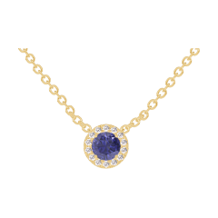 Naszyjnik Żółte złoto 375 - Niebieski szafir okrągły 0.3 karat - Korona z kamieni Diament - Łańcuszek Łańcuszek ankier