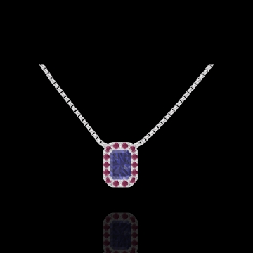 « L'ATELIER » NR 202103Naszyjnik Białe złoto 750 - Niebieski szafir Prostokąt 0.3 karat - Korona z kamieni Rubin - Łańcuszek Wenecjana