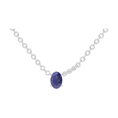 « L'ATELIER » Nº202116Naszyjnik Białe złoto 375 - Niebieski szafir Owal 0.3 karat - Łańcuszek Łańcuszek ankier