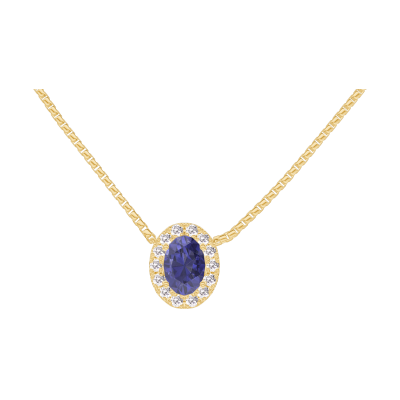 « L'ATELIER » Nº202126Naszyjnik Żółte złoto 375 - Niebieski szafir Owal 0.3 karat - Korona z kamieni Diament - Łańcuszek Wenecjana