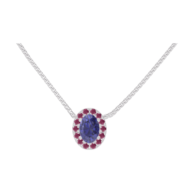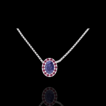 « L'ATELIER » NR 202135Naszyjnik Białe złoto 750 - Niebieski szafir Owal 0.3 karat - Korona z kamieni Rubin - Łańcuszek Wenecjana