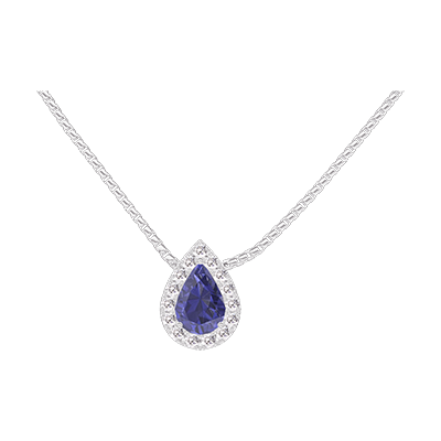 « L'ATELIER » NR 202159Naszyjnik Białe złoto 750 - Niebieski szafir Gruszka 0.3 karat - Korona z kamieni Diament - Łańcuszek Wenecjana