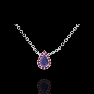 « L'ATELIER » Nº202163Naszyjnik Białe złoto 750 - Niebieski szafir Gruszka 0.3 karat - Korona z kamieni Rubin - Łańcuszek Łańcuszek ankier