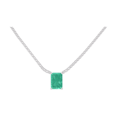 « L'ATELIER » NR 202280Naszyjnik Białe złoto 375 - Szmaragd Prostokąt 0.3 karat - Łańcuszek Wenecjana