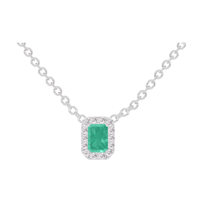 « L'ATELIER » Nº202284Naszyjnik Białe złoto 375 - Szmaragd Prostokąt 0.3 karat - Korona z kamieni Diament - Łańcuszek Łańcuszek ankier