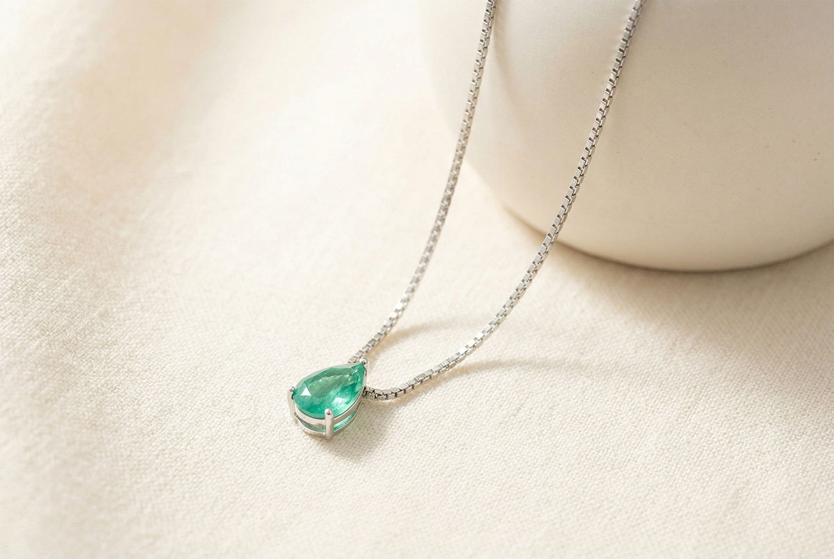 « L'ATELIER » NR 202343Naszyjnik Białe złoto 750 - Szmaragd Gruszka 0.3 karat - Łańcuszek Wenecjana