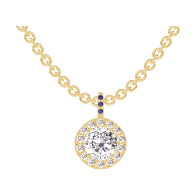 « L'ATELIER » Nº202478Zawieszka Żółte złoto 375 - Diament okrągły 0.3 karat - Korona z kamieni Diament - Oprawa Niebieski szafir - Łańcuszek Łańcuszek ankier  4