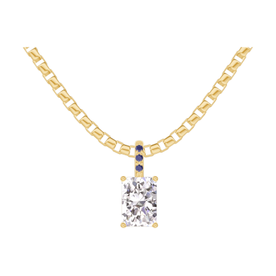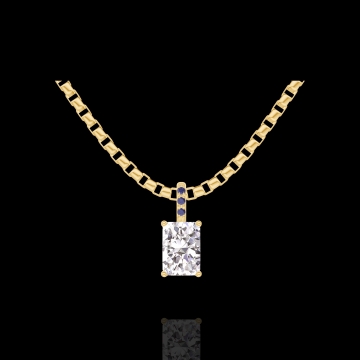 « L'ATELIER » Nº202829Zawieszka Żółte złoto 750 - Diament Prostokąt 0.3 karat - Oprawa Niebieski szafir - Łańcuszek Wenecjana