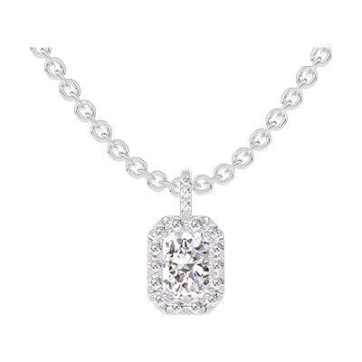 « L'ATELIER » Nº204008Zawieszka Białe złoto 375 - Diament laboratoryjny Prostokąt 0.3 karat - Korona z kamieni Diament laboratoryjny - Oprawa Diament laboratoryjny - Łańcuszek Łańcuszek ankier