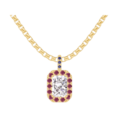 « L'ATELIER » Nº204077Zawieszka Żółte złoto 750 - Diament laboratoryjny Prostokąt 0.3 karat - Korona z kamieni Rubin - Oprawa Niebieski szafir - Łańcuszek Wenecjana