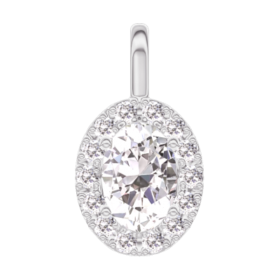 « L'ATELIER » NR 204179Zawieszka Białe złoto 750 - Diament laboratoryjny Owal 0.3 karat - Korona z kamieni Diament laboratoryjny - Bez łańcuszka