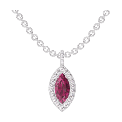 « L'ATELIER » Nº205736Zawieszka Białe złoto 375 - Rubin Markiza 0.3 karat - Korona z kamieni Diament - Oprawa Diament - Łańcuszek Łańcuszek ankier