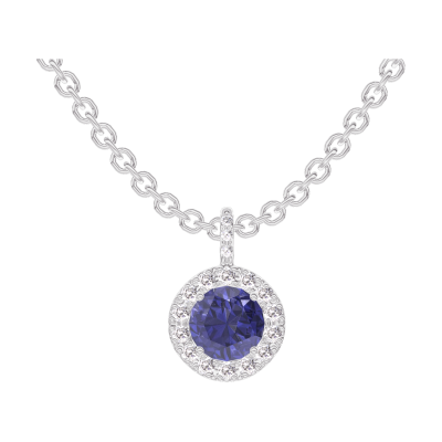 « L'ATELIER » Nº205928Zawieszka Białe złoto 375 - Niebieski szafir okrągły 0.3 karat - Korona z kamieni Diament - Oprawa Diament - Łańcuszek Łańcuszek ankier 4