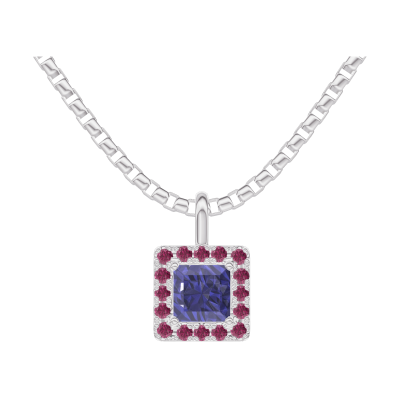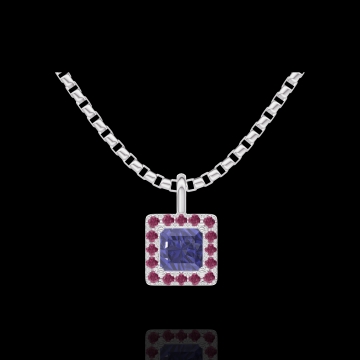 « L'ATELIER » Nº206179Zawieszka Białe złoto 750 - Niebieski szafir „Księżniczka” 0.3 karat - Korona z kamieni Rubin - Łańcuszek Wenecjana