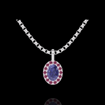 « L'ATELIER » Nº206563Zawieszka Białe złoto 750 - Niebieski szafir Owal 0.3 karat - Korona z kamieni Rubin - Łańcuszek Wenecjana