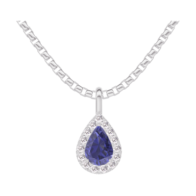 « L'ATELIER » Nº206708Zawieszka Białe złoto 375 - Niebieski szafir Gruszka 0.3 karat - Korona z kamieni Diament - Łańcuszek Wenecjana