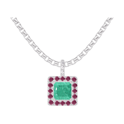 « L'ATELIER » NR 207335Zawieszka Białe złoto 750 - Szmaragd „Księżniczka” 0.3 karat - Korona z kamieni Rubin - Oprawa Diament - Łańcuszek Wenecjana