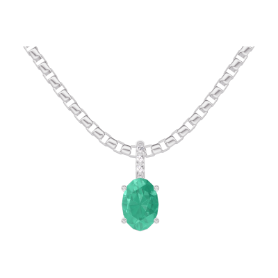 « L'ATELIER » NR 207624Zawieszka Białe złoto 375 - Szmaragd Owal 0.3 karat - Oprawa Diament - Łańcuszek Wenecjana