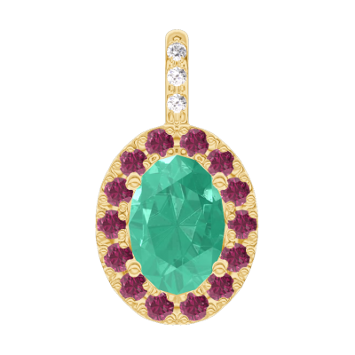 « L'ATELIER » NR 207686Zawieszka Żółte złoto 375 - Szmaragd Owal 0.3 karat - Korona z kamieni Rubin - Oprawa Diament - Bez łańcuszka