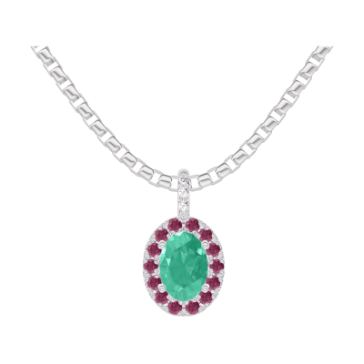 « L'ATELIER » NR 207719Zawieszka Białe złoto 750 - Szmaragd Owal 0.3 karat - Korona z kamieni Rubin - Oprawa Diament - Łańcuszek Wenecjana