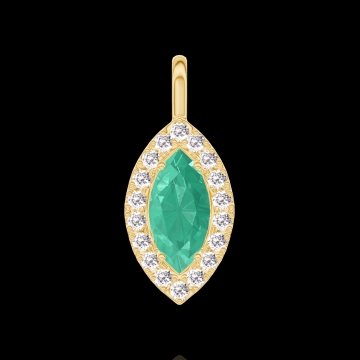 « L'ATELIER » Nº208017Zawieszka Żółte złoto 750 - Szmaragd Markiza 0.3 karat - Korona z kamieni Diament - Bez łańcuszka